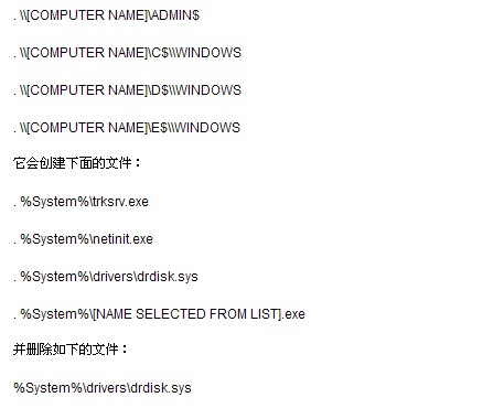 W32.Disttrack是一个通过网络共享进行传播的蠕虫病毒。