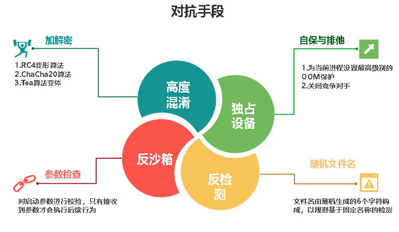 其次,在数据保护层面,木马对所有核心配置及通信内容共计使用了三种经过高度变形和混淆的加密算法变种(RC4、ChaCha20、TEA),具备较高的对抗性,提升分析难度。