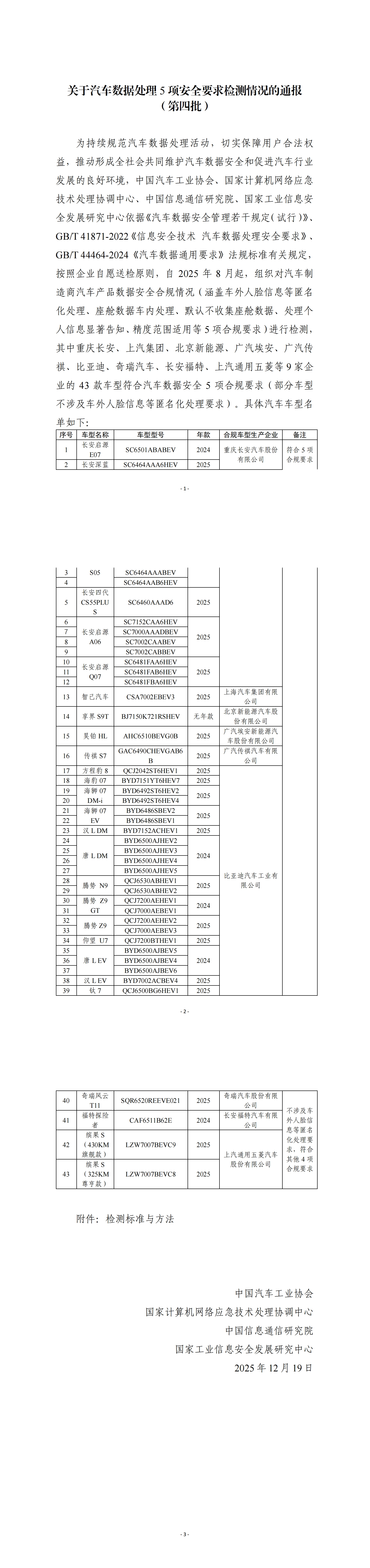 关于汽车数据处理5项安全要求检测情况的通报(第四批)