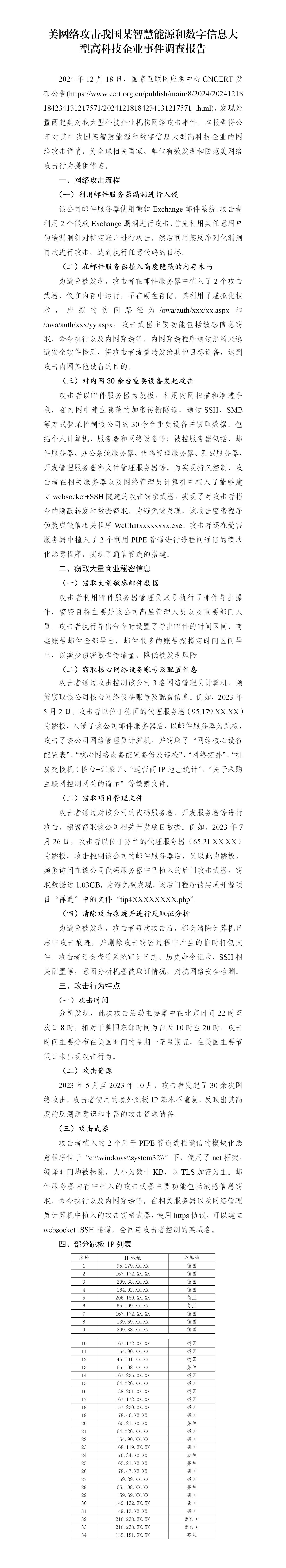 美网络攻击我国某智慧能源和数字信息大型高科技企业事件调查报告